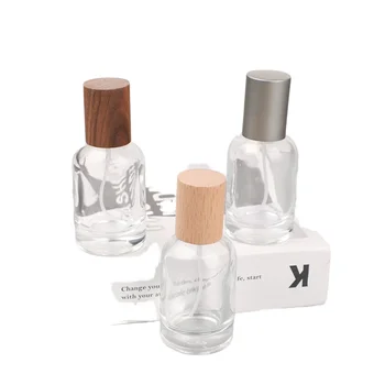 Custom Luxury Refillable 30ml 50ml 100ml square Glass Perfume Bottle Wooden Lid Cap Empty Spray Perfume Bottles with Box